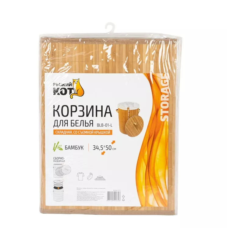 Корзина для белья с ручками, бамбук, 46,8л, 34,5х50см
