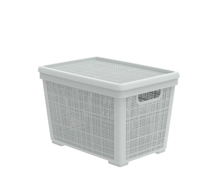 Корзина для хранения "Лен" с крышкой 22л, 40х28,4х26,4см, цв.серый