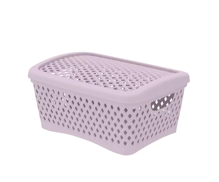 Корзина для хранения "Ромбики" с крышкой 25,5х19х12см, цв.пепел розы