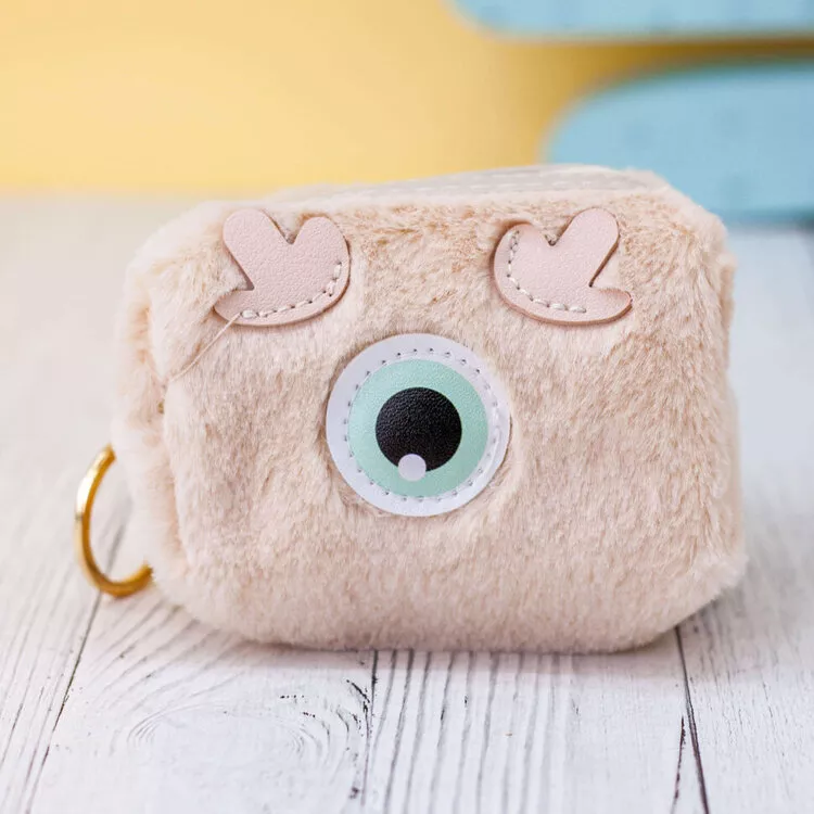 Кошелек меховой "Eyes" 10,5х8х6см, цв.бежевый