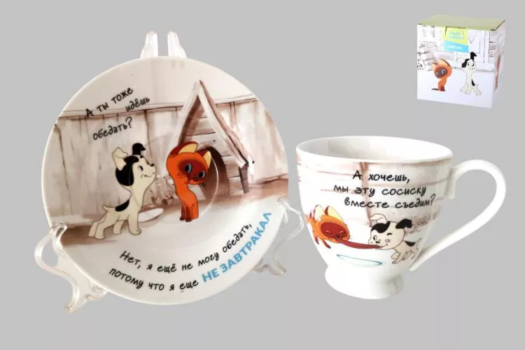 "Котенок Гав.А ты тоже идешь обедать?" Чайная пара 440мл в п.у.