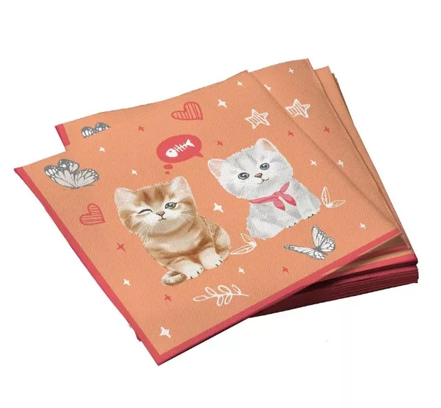 "Котики" Салфетки трехслойные 33х33см, 20шт, цв.персиковый