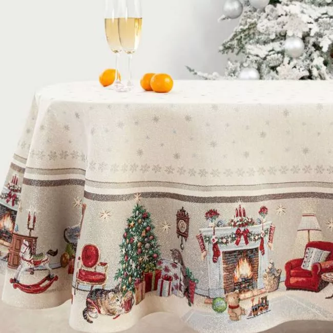"Котята у камина" Скатерть овал 160х220см