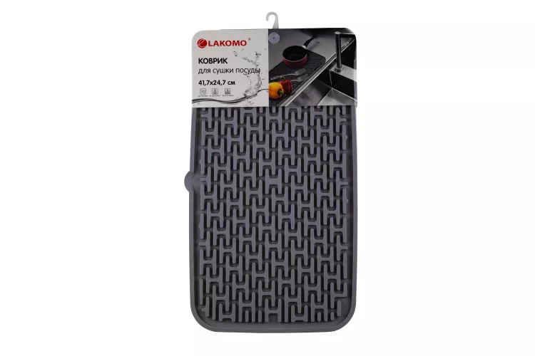 Коврик для сушки посуды, силиконовый 41,7х24,7х0,45см, цв.серый
