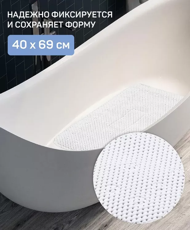 Коврик противоскользящий "Самуи" 40х69см, цв.белый