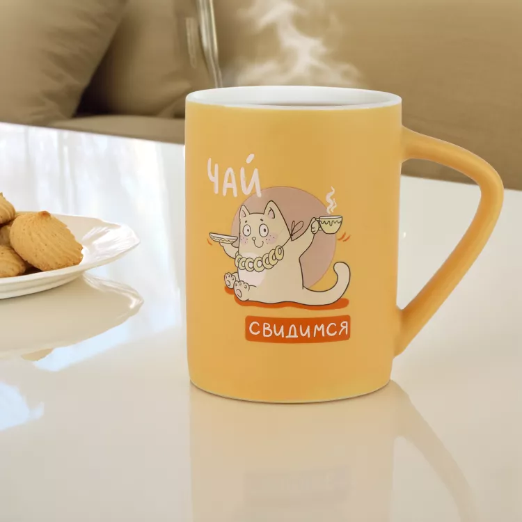 Оранжевая кружка с забавным принтом котика и вдохновляющей надписью "Чай свидимся" станет вашим любимым спутником на протяжении дня. Матовая поверхность придает ей особый шарм и делает приятной на ощупь. А эргономичная ручка обеспечивает комфортный хват....