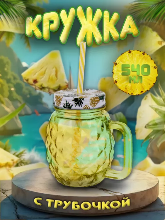 Кружка с трубочкой "Ананас" 540мл, цв. желтый