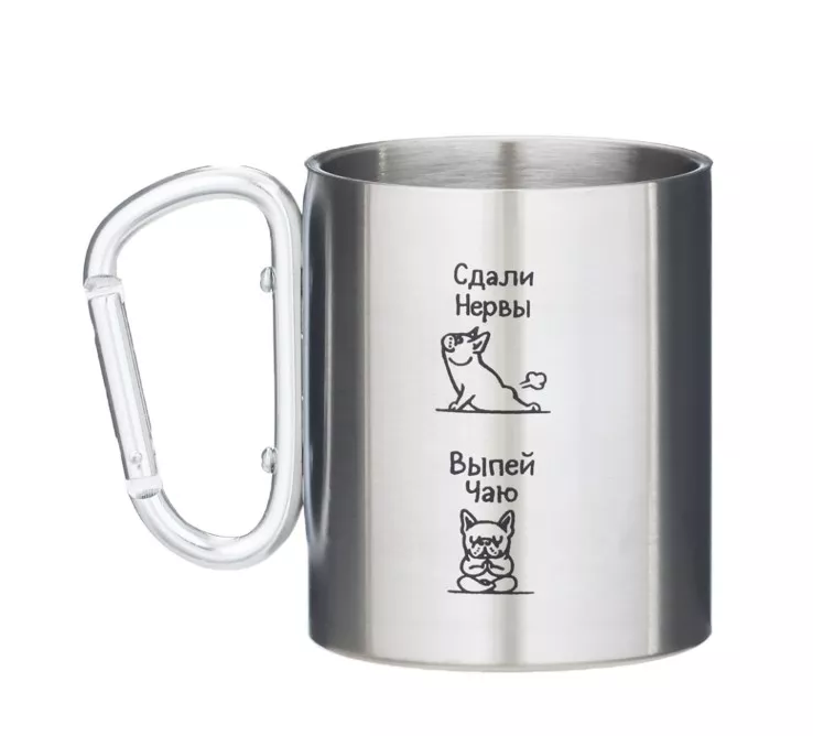 Кружка стальная с карабином "Сдали нервы - выпей чаю" 300мл