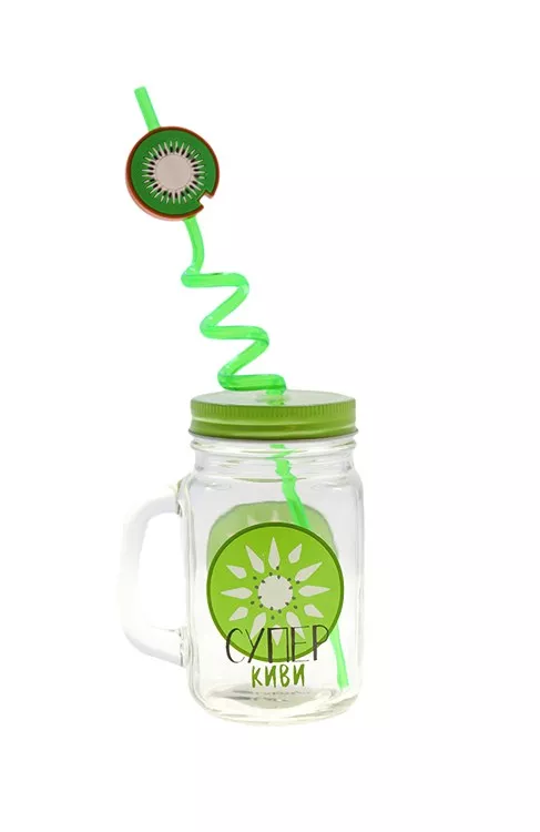 Кружка "Супер Киви" с крышкой и трубочкой 450мл