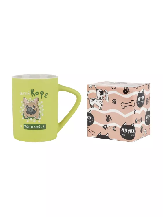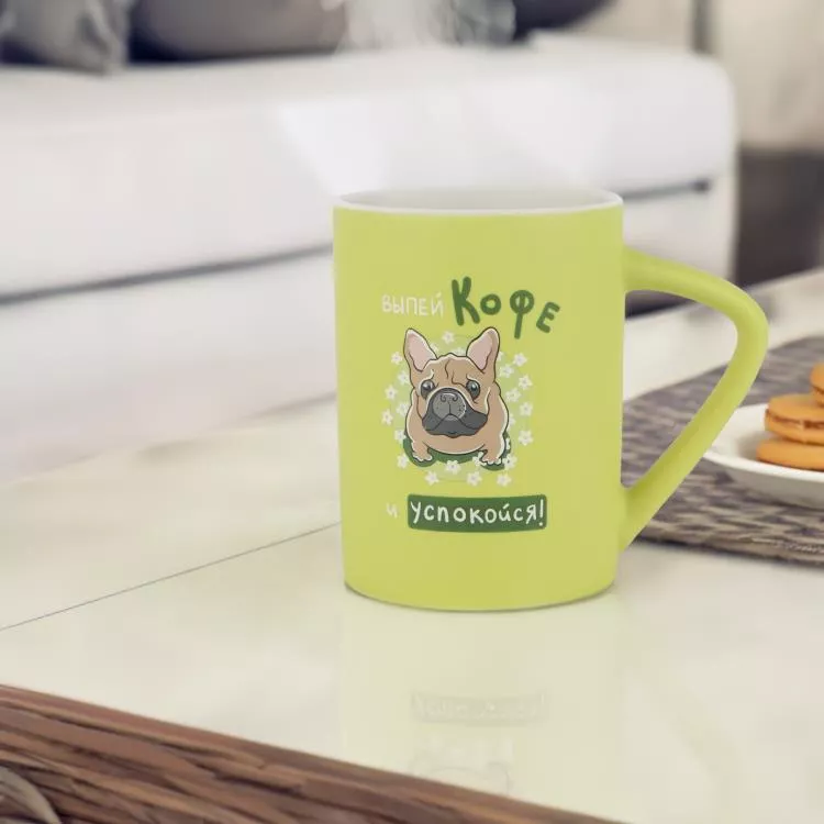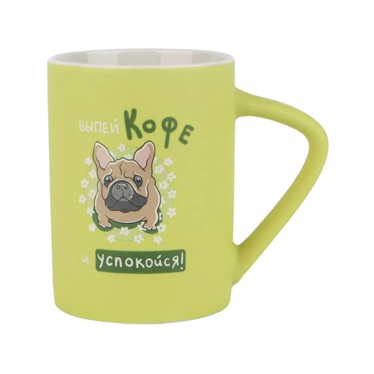 Яркая салатовая кружка с забавным принтом французского бульдога и вдохновляющей надписью "Выпей кофе и успокойся" станет вашим любимым спутником на протяжении дня. Матовая поверхность придает ей особый шарм и делает приятной на ощупь. А эргономичная ручка...