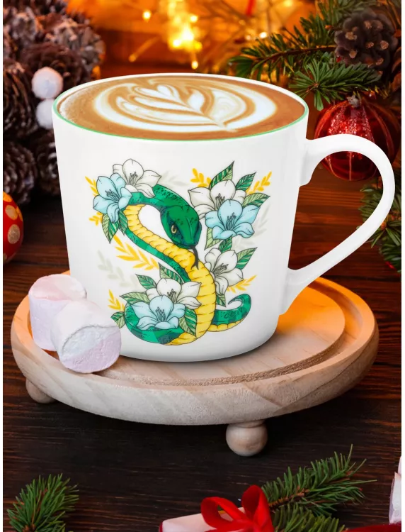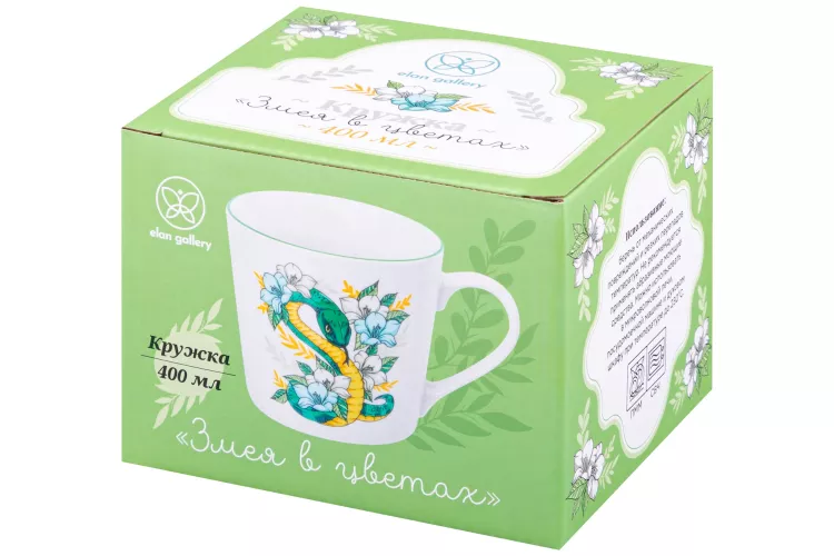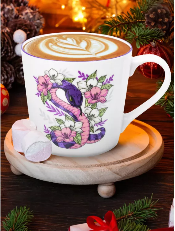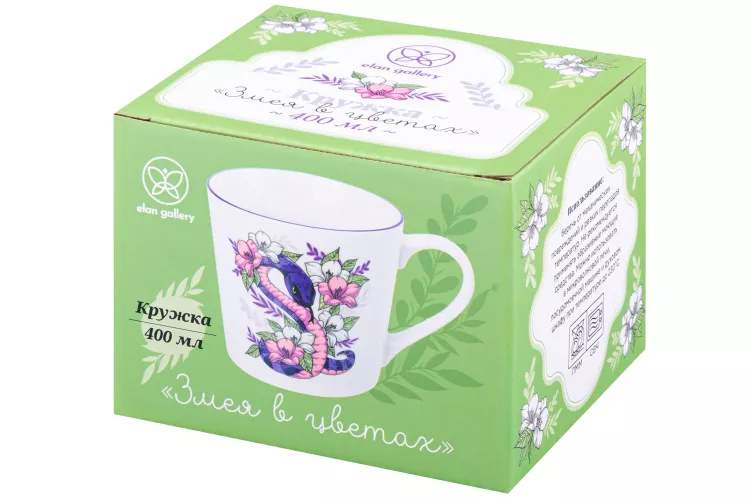 Кружка "Змея в цветах" 400мл, цв.белый, 2в.