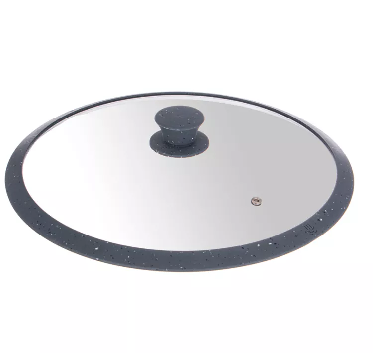 Крышка стекл. 26см с силикон. ободком цв.серый мрамор