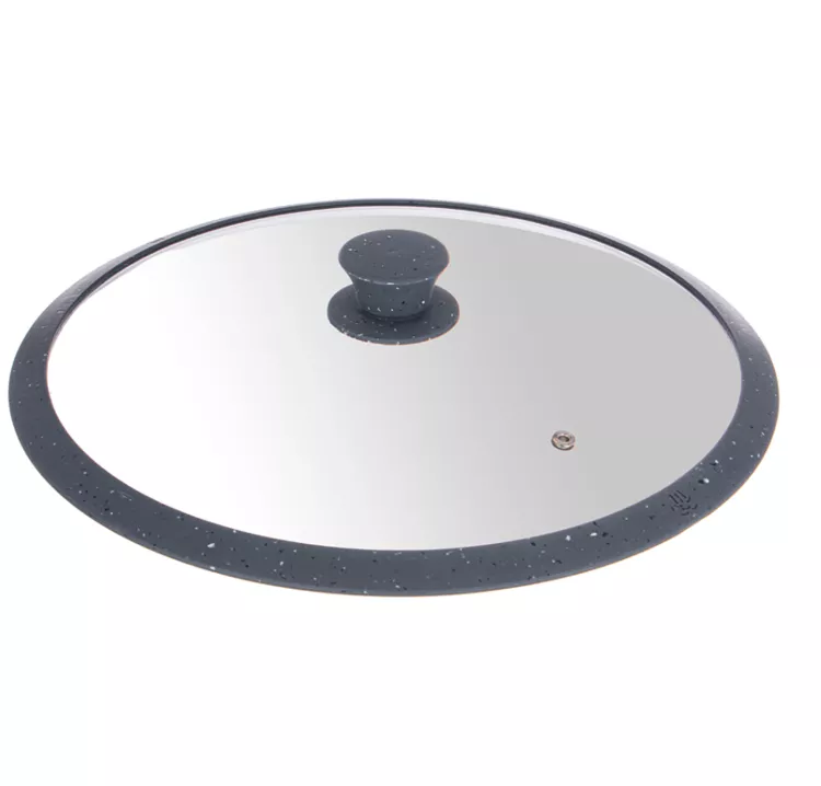 Крышка стекл. 32см с силикон. ободком цв.серый мрамор