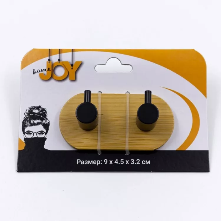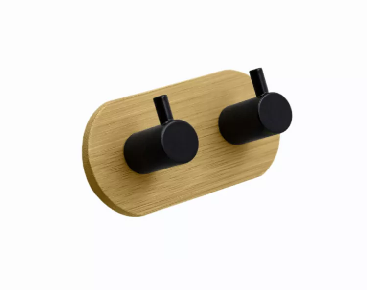 Крючок самоклеящийся двойной 9х4,5х3,2см, бамбук, цв.черный 13078