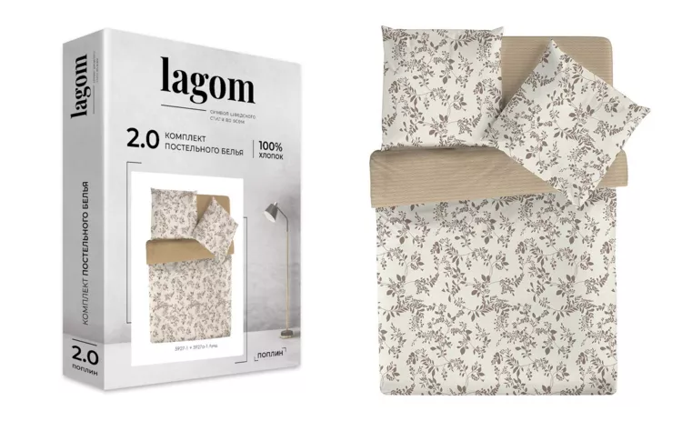 "LAGOM" Комплект постельного белья "Лунд" семейный, 70х70см, поплин