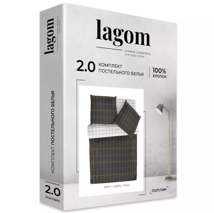 "LAGOM" Комплект постельного белья "Питео" 2сп с евро-простыней, 70х70см, поплин