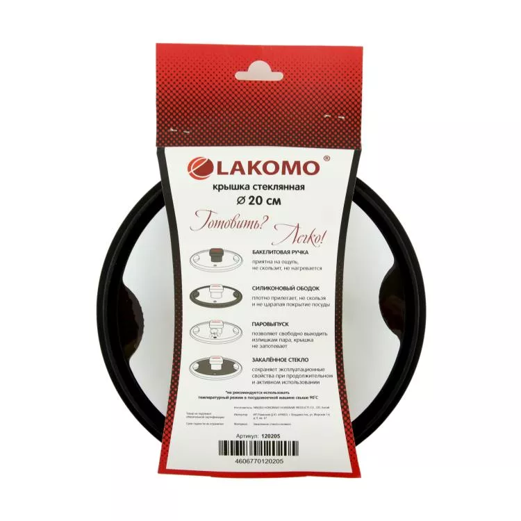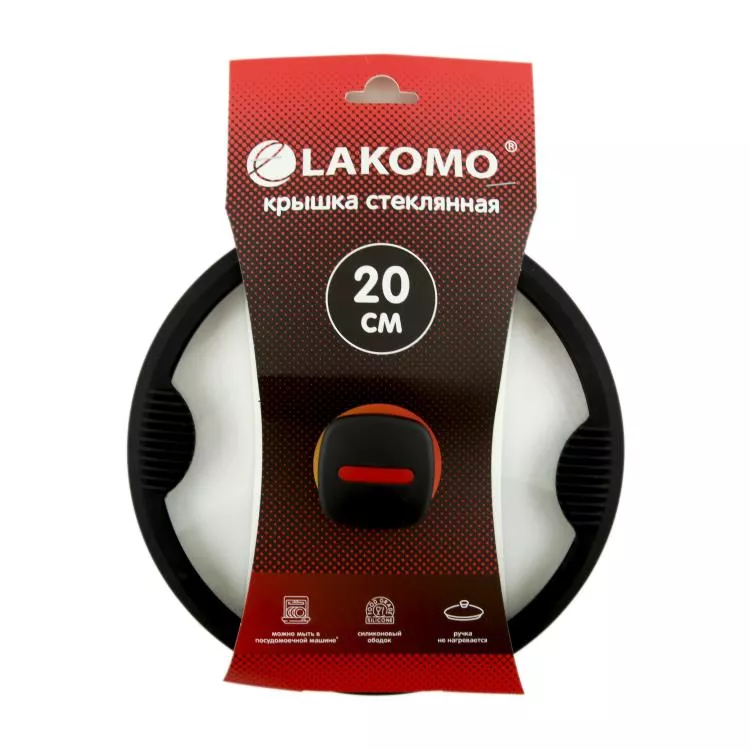 "LAKOMO" Крышка стекл. 20см с силикон. ободком, плоская