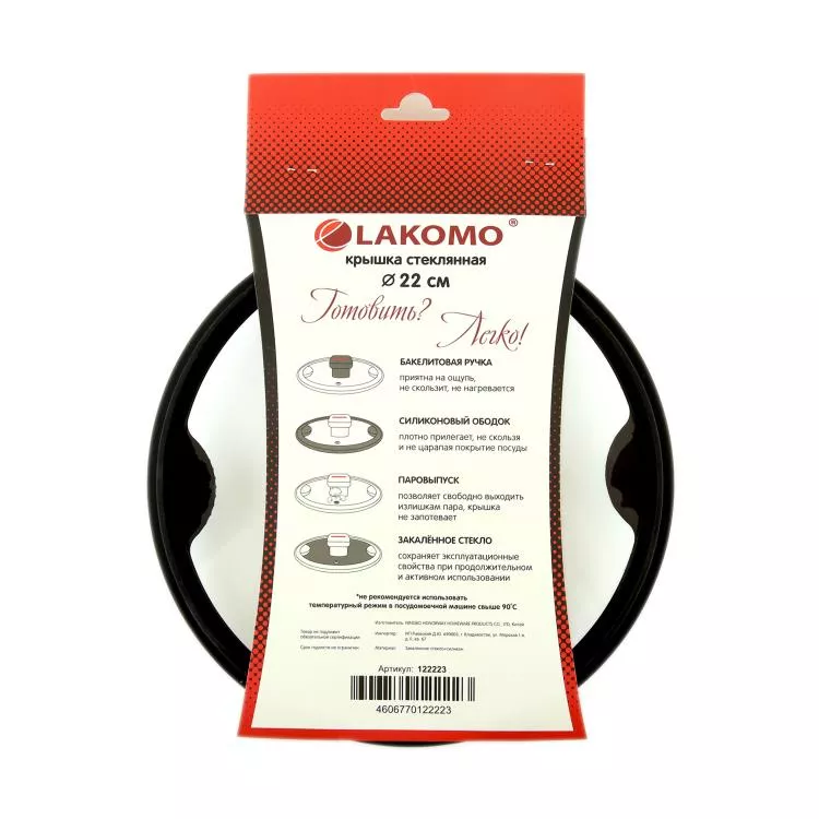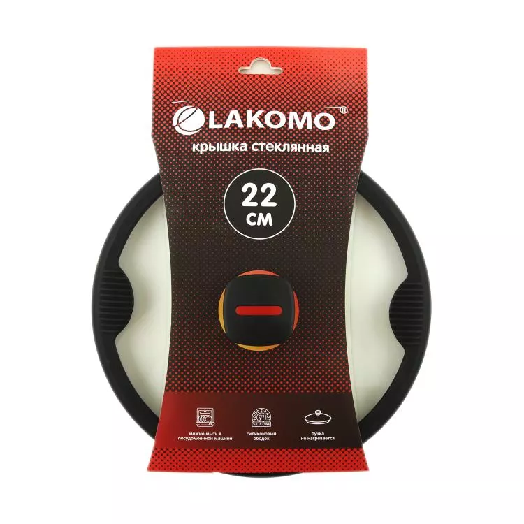"LAKOMO" Крышка стекл. 22см с силикон. ободком, плоская