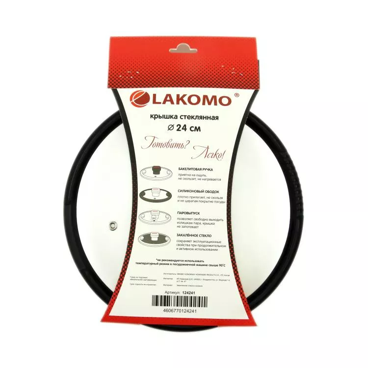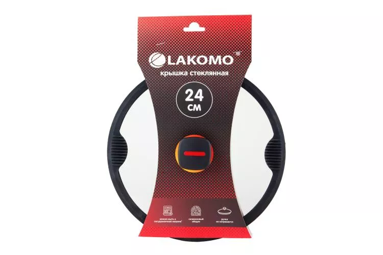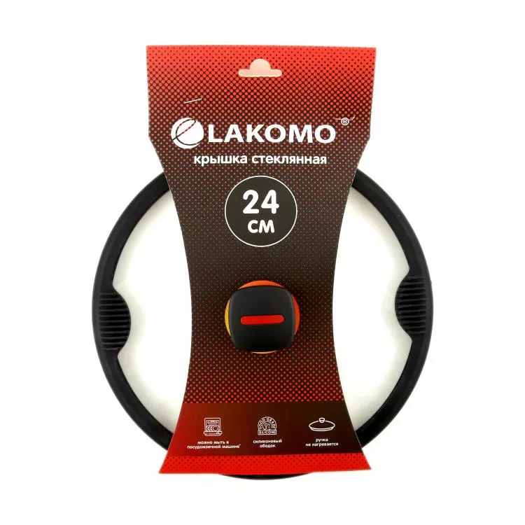 "LAKOMO" Крышка стекл. 24см с силикон. ободком, плоская