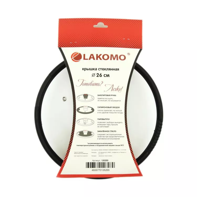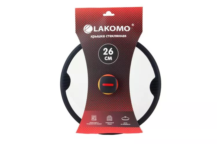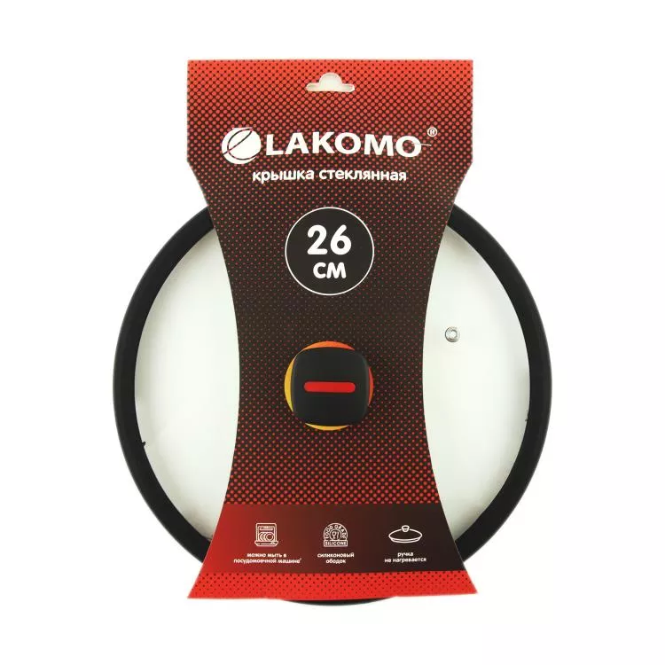 "LAKOMO" Крышка стекл. 26см с силикон. ободком, плоская