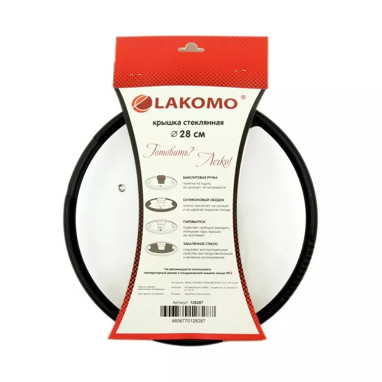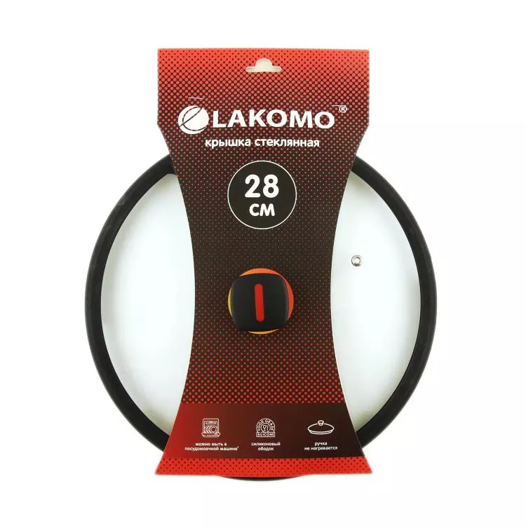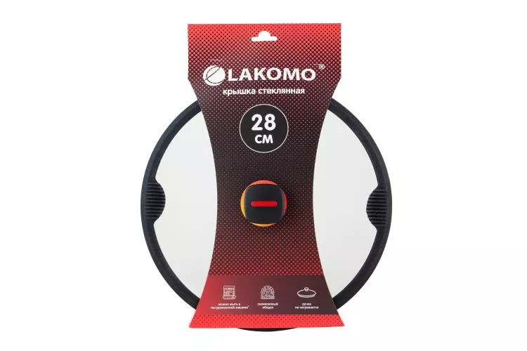 "LAKOMO" Крышка стекл. 28см с силикон. ободком, плоская