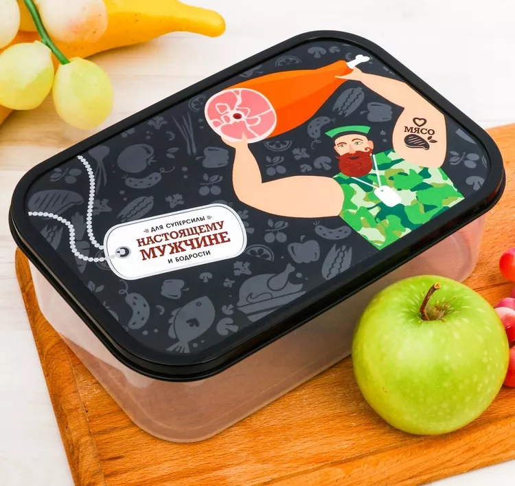 Ланч-бокс "Обед настоящего мужика" пластик 1,2л прям