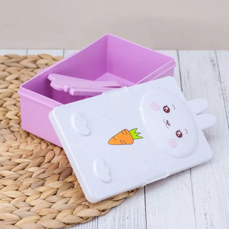 Ланч-бокс "Rabbit" 27,3х10,8х6,4см, цв.бело-розовый