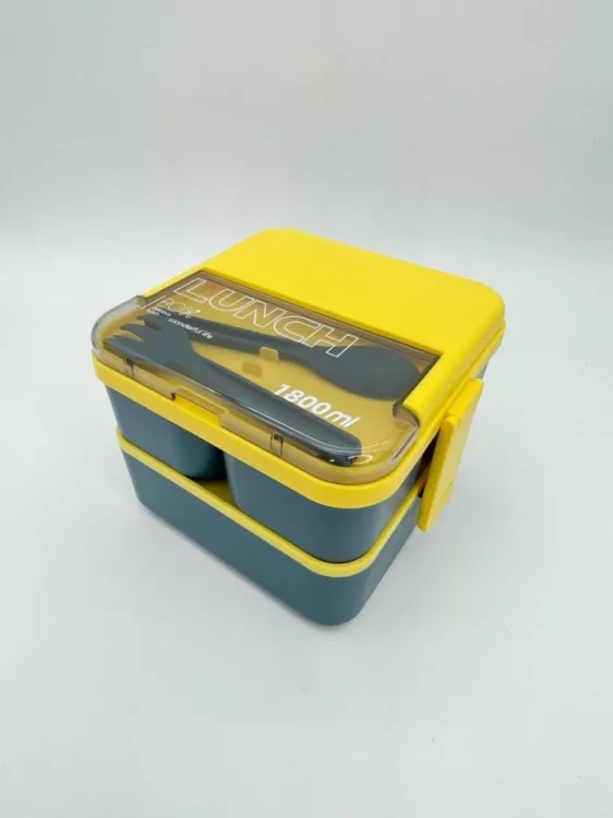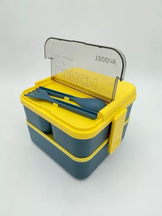 Ланч-бокс "Sistem lunch" 1800мл со столовыми приборами, 16,6х17,8х16,6см, цв.желтый