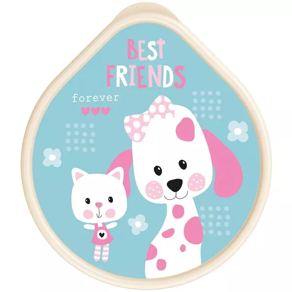 Ланч-бокс "Собачка и котенок" 13,5х4,5см с крышкой, цв.светло-бежевый