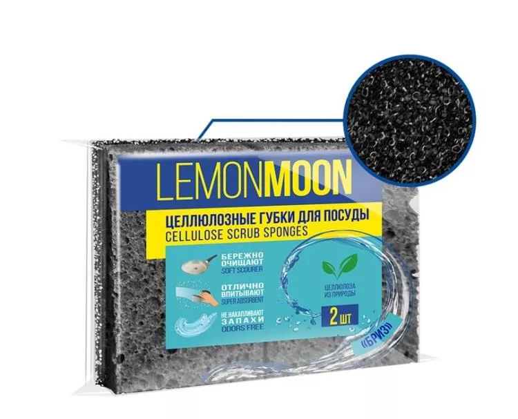 "Lemon Moon" Бриз" Набор губок для посуды, целлюлозные 2шт. 11х6,5х2,5см
