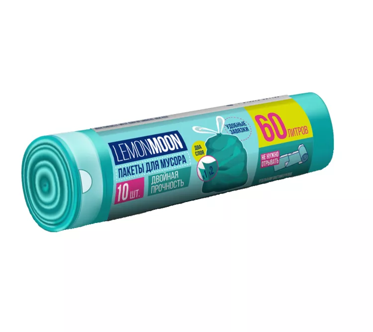 "Lemon Moon" Мешки для мусора с завязками "Двойная прочность" ПНД+ПВД 60л, 10шт. 16мкм