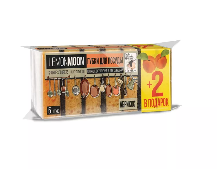 "Lemon Moon" Набор губок для посуды с ароматом абрикоса 7шт. 10х7,1х3,6см