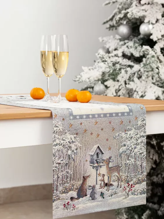 "Лесные друзья у кормушки" Дорожка на стол 44х140см
