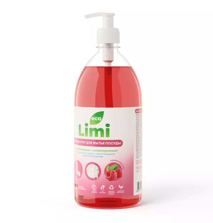 Высококонцентрированное экономичное средство «Limi» безопасно и эффективно для мытья посуды. Устраняет жир и запахи с посуды даже в холодной воде. Оно полностью смывается водой и подходит для мытья детской посуды и игрушек.