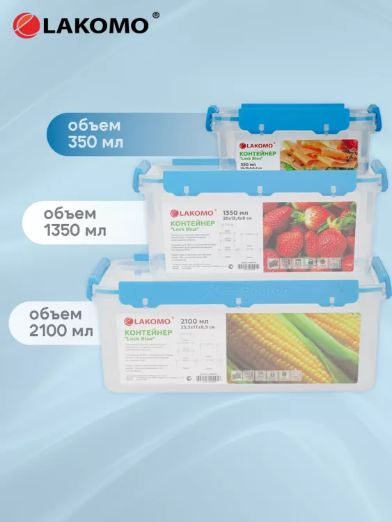 "Lock Blue" Контейнер пластик 0,35л прям 14х10,4х5,4см