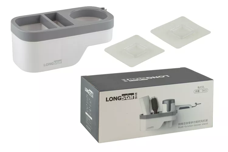 "LONGSTAR" Держатель для фена настен. с клеевым креплением 22,8х11,6х9см, цв.бело-серый