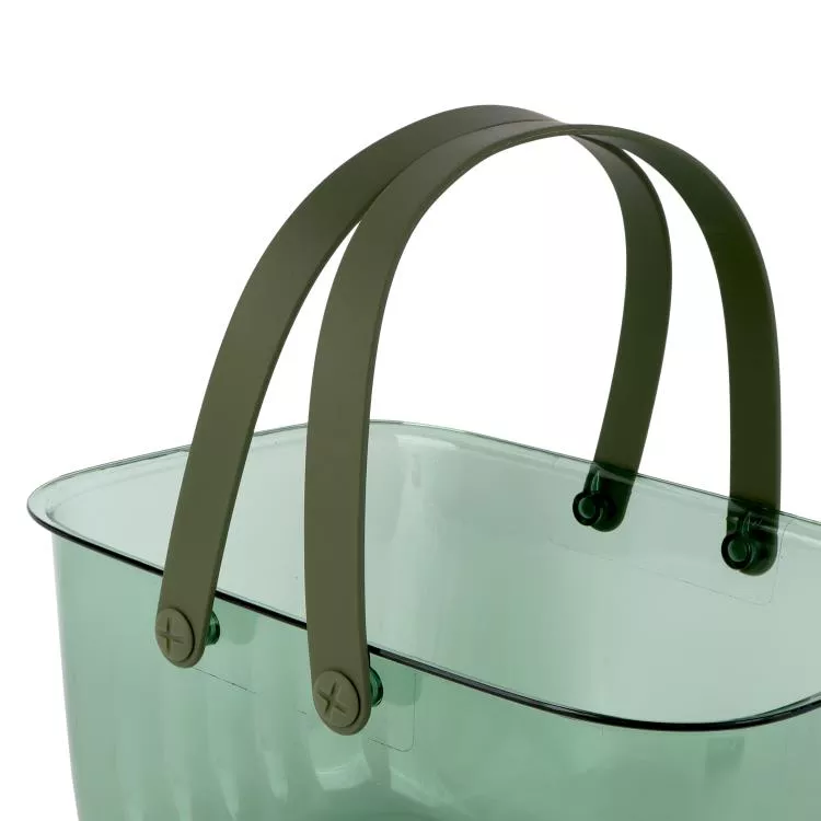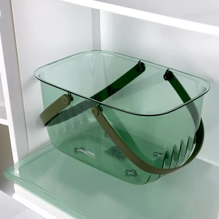 Новые горизонты обустройства с универсальной корзиной с ручками. Цвет прозрачный с зеленым оттенком позволяет легко видеть содержимое, что делает этот контейнер идеальным выбором для хранения.