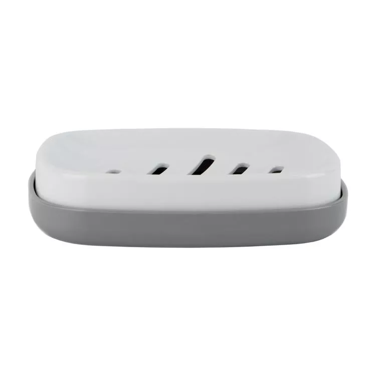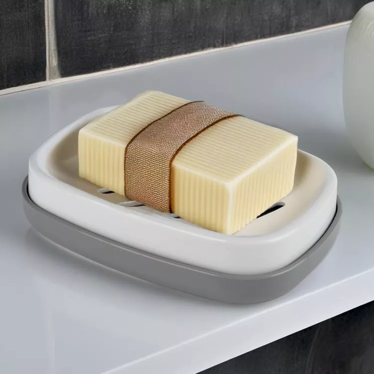 Идеальное дополнение к интерьеру вашей ванной комнаты или кухни - пластиковая мыльница в спокойных серо-белых тонах. Этот аксессуар не только красив, но и чрезвычайно практичен благодаря интеллектуальной конструкции.