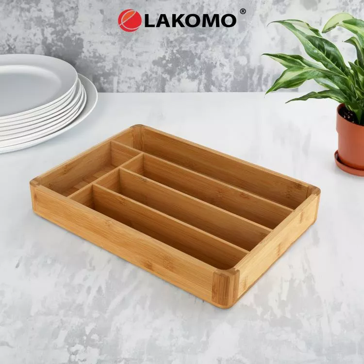 Организуйте пространство на кухне с помощью стильного и практичного лотка для столовых приборов из бамбука!