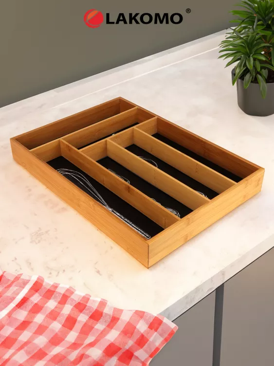 Организуйте пространство на кухне с помощью стильного и практичного лотка для столовых приборов из бамбука!