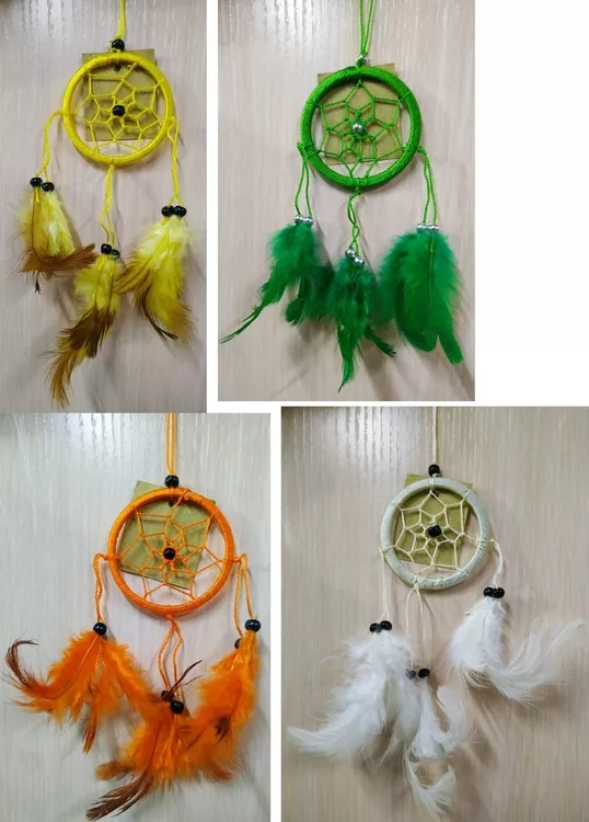Материал: нитки, перья, пластик.