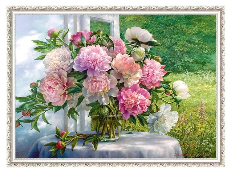 М. Сатаров Картина "Пионы у окна" 50х70см