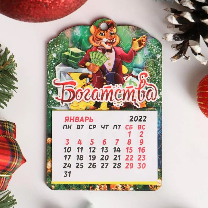 Магнит-календарь "Тигр. Богатства" 2в. 9,3х6,5см