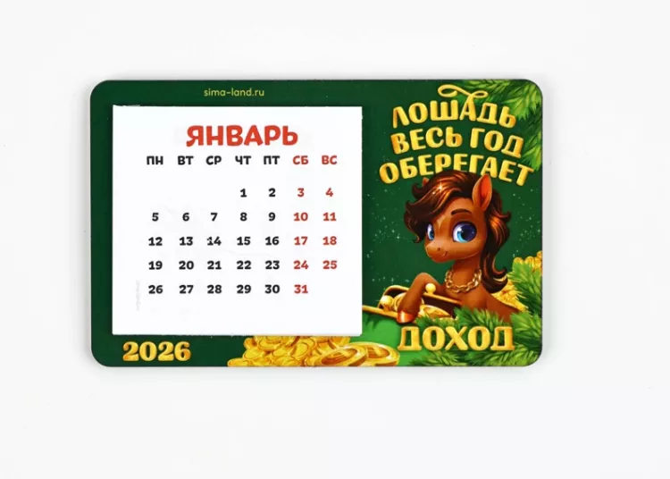 Магнит с отрывным календарем "Лошадка оберегает доход" 2026 6х5,5см
