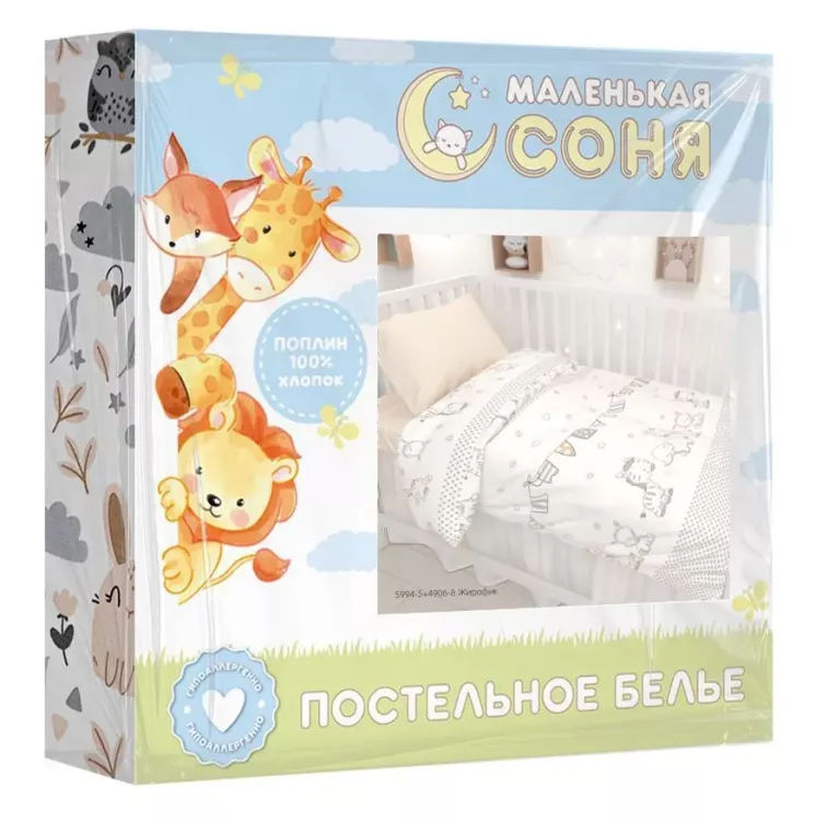 "Маленькая Соня" Комплект постельного белья "Жирафик" ясельный, 40х60см, поплин