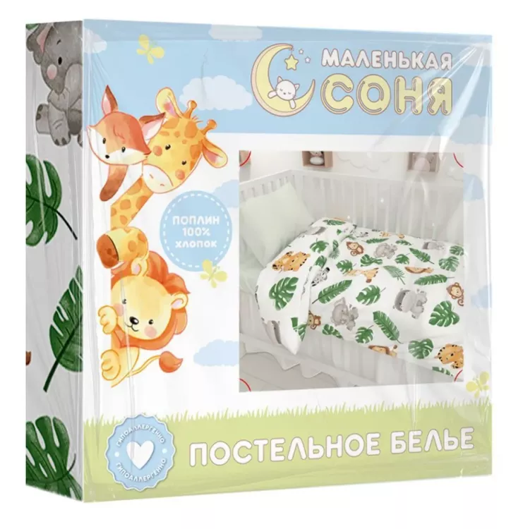 "Маленькая Соня" Комплект постельного белья "Зоо" ясельный, 40х60см, поплин