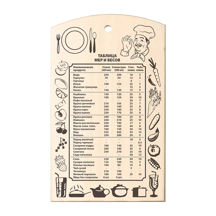 MARMITON Доска разделочная "Таблица мер и весов" 30х18,5см, дерево, прямоуг.