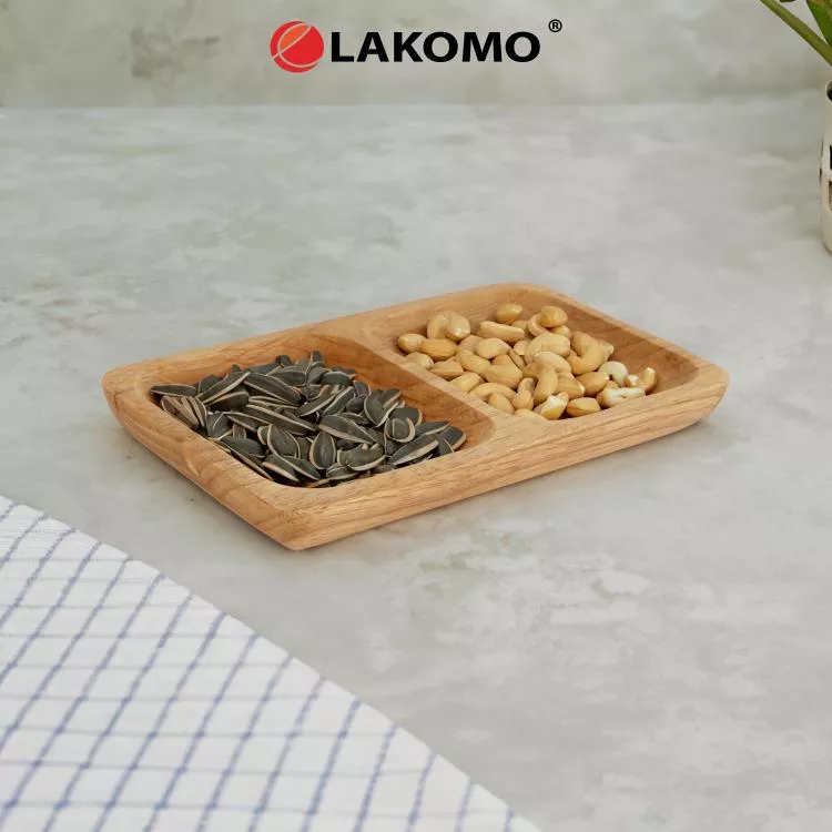 Деревянная менажница — это стильное и практичное блюдо для сервировки закусок, соусов, орехов и салатов. Изготовленная из натурального каучукового дерева, она отличается высокой экологичностью и прочностью. Два отделения менажницы позволяют удобно раздели...