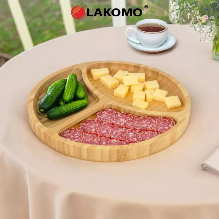 Бамбуковая деревянная менажница — идеальное решение для стильной сервировки закусок, орехов и салатов. Эта универсальная и практичная менажница выполнена в стиле лофт, что придаст вашему столу современный и изысканный вид.