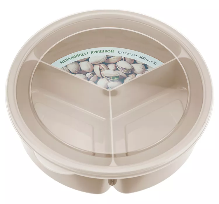 Менажница с крышкой 3секции 20см, цв.капучино